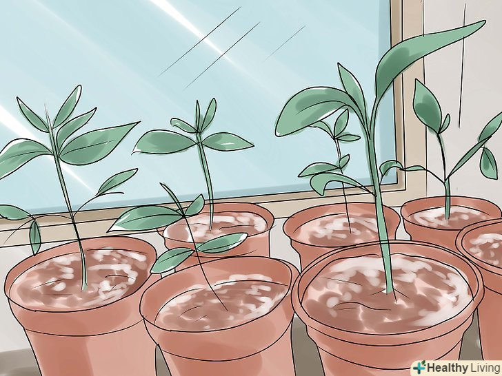 Посадіть насіння в горщик. насіння повинні бути посаджені на відстані 5 см.один від одного.