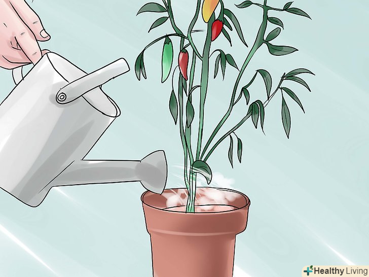 Збризніть насіння водою. збризкуйте насіння водою так часто, як це необхідно для того, щоб зберегти грунт вологою. Вода необхідна для перцю чилі, особливо на ранніх етапах посадки.