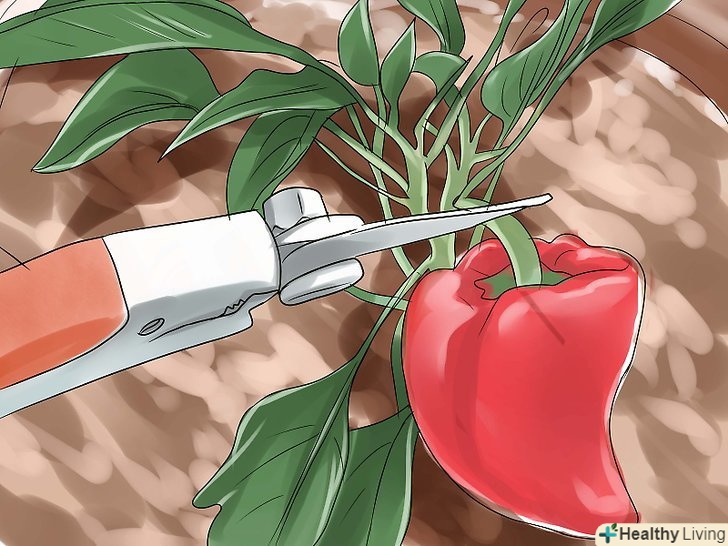 Зберіть перець по одному за раз. зверніть увагу на стандартний розмір і колір-червоний, помаранчевий, жовтий, або зелений - для сортів перцю чилі, який ви вибрали для посадки. Як тільки перець досягає цих специфікацій, використовуйте секатор або ножиці, щоб зрізати стебло безпосередньо над перцем. Перцю чилі потрібно 90 днів після сходів до отримання плодів, які готові для збору врожаю.