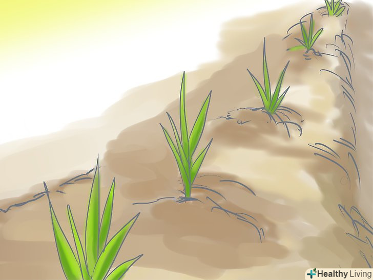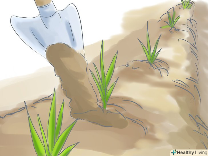 Розкидайте столони зверху на зораний грунт або висадіть їх рядами.- Для того, щоб вирощувати столони рядами, виконайте невеликі борозни в грунті глибиною 5 см на відстані 15-30 см один від одного.