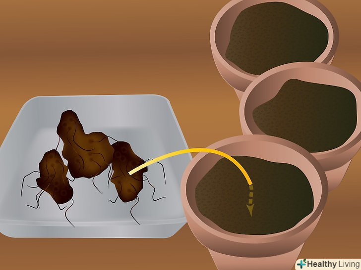 Посадіть бульби, що знаходяться в стані спокою, в горщики діаметром 15-20 см., за кілька тижнів до останнього морозу, очікуваного у вашому районі. Якщо ви живете в теплому кліматі або загроза заморозків вже пройшла, можна посадити бульби прямо в сад.- Занурте бульби на 8-10 см. нижче поверхні грунту.