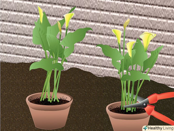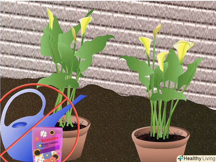 Зупиніть полив і підгодівлю рослин в кінці вегетаційного періоду. це дозволить грунті висохнути, і рослини відімруть. Навіть якщо ви живете в теплому кліматі, каллам потрібно йти на зимовий спокій, щоб знову цвісти в наступному році.