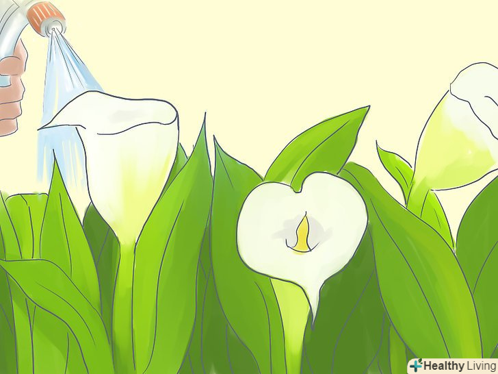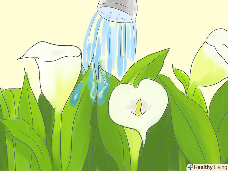 У сезон росту користуйтеся розчинним у воді добривом. у період росту кожні два тижні підгодовуйте кали добривом. Ідеально використовувати водорозчинне добриво, що додається в поливальну лійку.- Підгодівлю вуличних калл слід припинити після початку цвітіння, але горшкові кали слід підгодовувати весь період цвітіння.