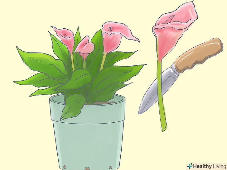 - Не поливайте кали 3 місяці і не зрізайте листя до повного висихання. [4]