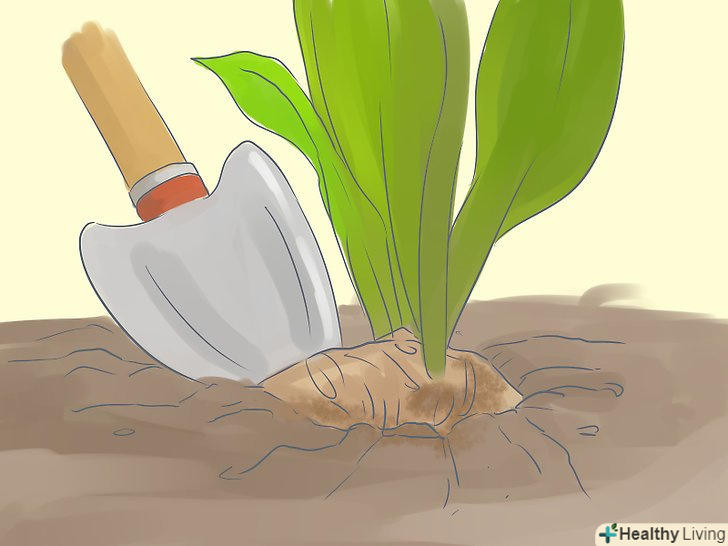 У холодних кліматах викопайте бульби калл після перших заморозків. якщо ви живете в холодному кліматі подумайте про викопування бульб калл на зиму, щоб дати їм більше шансів на виживання.- Для цього дочекайтеся перших морозів. Зметіть з бульб якомога більше землі, не пошкоджуючи коренів, а потім покладіть сушитися на кілька днів. Можна розкласти бульби на газеті в прохолодному темному місці, наприклад в сараї.