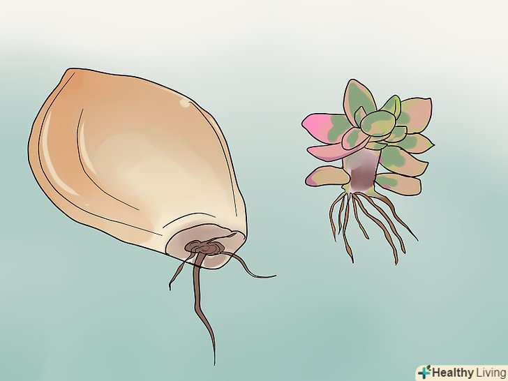 Видаліть материнський лист. зрештою, коріння кожного нового рослини зміцніють і почнуть формувати свої власні нові листя. При цьому материнський лист, який ви використовували для розведення, стане в'янути. Обережно зігніть і покачайте материнський лист, щоб від'єднати його від нового рослини. Будьте обережні, щоб не пошкодити молоді коріння.- З моменту в'янення материнського листа настає час пересадки сукулентів в індивідуальні горщики. [10]