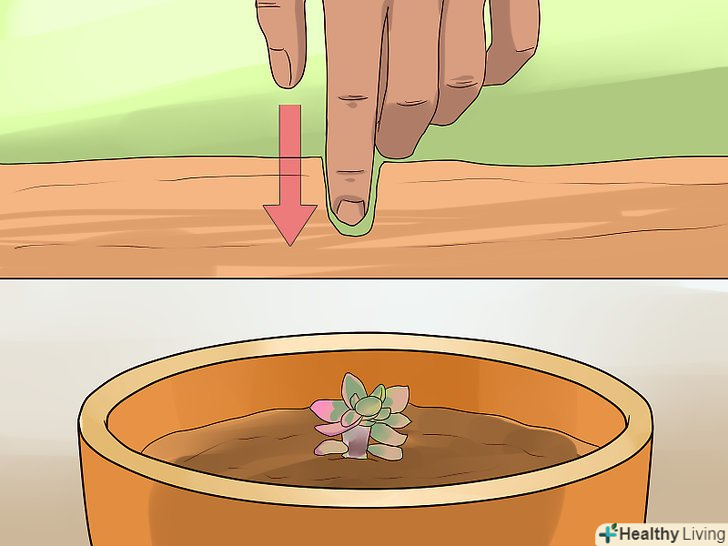 Пересадіть молоді Сукуленти. Пальцем зробіть поглиблення в центрі горщика. Посадіть молоде рослина в поглиблення і засипте його коріння землею.- Піде приблизно рік на те, щоб молоді Сукуленти придбали нормальний розмір. У міру росту рослин їх можна пересаджувати в більші горщики. [11]