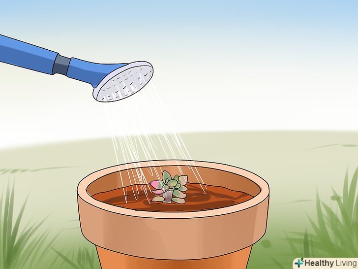 Поливайте рослини після висихання грунту. як тільки нові рослини будуть повністю сформовані і пересаджені, припиніть щодня зволожувати їх і перейдіть на режим поливу для дорослих сукулентів. Чекайте, щоб грунт повністю встигала повністю просохнути між поливами, і поливайте рослини тільки в міру необхідності.- При поливі сукулентів рясно поливайте землю, щоб вона добре промокала. [12]
