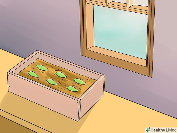 Забезпечте листя великою кількістю розсіяного сонячного світла. більшість сукулентів є мешканцями пустель, тому дорослим рослинам необхідно дуже багато прямого сонячного світла. Але при вирощуванні сукулентів з листя вони потребують розсіяному сонячному світлі до моменту формування нового рослини. [7]- Тримайте листя на теплому вікні, але без прямого сонячного світла, або яке захищене листям дерев або віконною фіранкою.