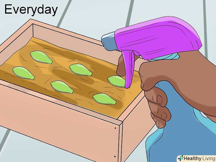 Щодня зволожуйте листя, поки на них не з'являться коріння. укорінюються сукулентів потрібно трохи більше води, ніж дорослим рослинам, але при цьому надлишки вологи можуть спровокувати гниття і загибель листя. Замість поливу візьміть пульверизатор і щодня зволожуйте грунт з його допомогою. Ви повинні зробити так, щоб тільки верхній шар грунту був вологим. [8]- Якщо ви живете в дуже вологому кліматі, то вам може зовсім не знадобитися зволожувати листя в період утворення коренів.