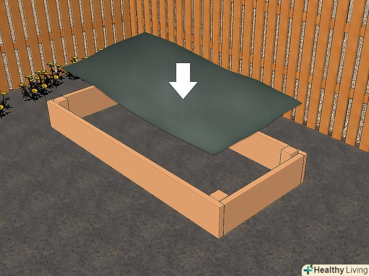 Відріжте шматок садового пластику або укривного матеріалу відповідно до площі вашої високої грядки. помістивши його на поверхні, ви значно скоротите ріст бур'янів. Сім або вісім шарів змоченої газети або пакувального картону також будуть стримувати ріст бур'янів (не забудьте видалити скотч з картону).