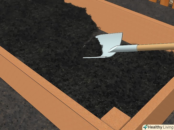 Після того, як ваша грядка встановлена на постійне місце, заповніть її грунтом. додайте трохи компостного добрива в основу грядки, а потім шар грунту поверх багатого поживними речовинами компосту. Ви можете значно скоротити витрати, використовуючи грунт (до 50%) з інших частин вашої ділянки. Заповніть принаймні 1/3 вашої високої грядки компостом або гноєм(продаються в садових розплідниках або садових центрах у 20-кілограмових мішках).- Додайте сухих органічних добрив (наприклад, деревної золи, кісткового борошна або кров'яного борошна) при будівництві вашої грядки. Дотримуйтесь інструкцій на упаковці.