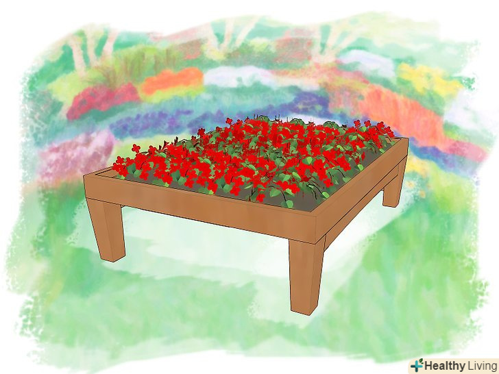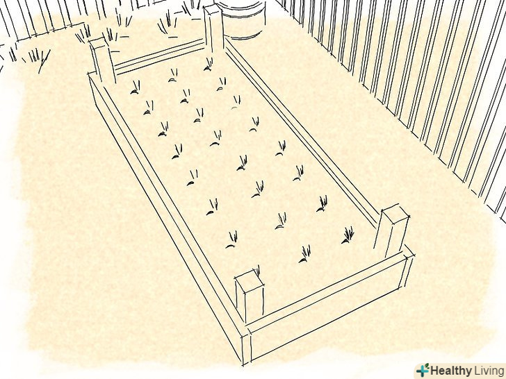 Визначте і розробіть форму високої грядки. на щастя, конструювання високої грядки не займе багато часу! Потрібно просто побудувати ящик з відкритим верхом і дном. Ви можете зробити його будь-якої форми, який захочете. Уявіть собі, як ніби ви робите форму, щоб залити в неї грунт (як заливають цемент або гіпс в форму). Якщо ви влаштовуєте грядку поруч зі стіною або огорожею, не робіть її ширше 60 см, щоб мати можливість дотягнутися скрізь.ПОРАДА ФАХІВЦЯSteve Masley