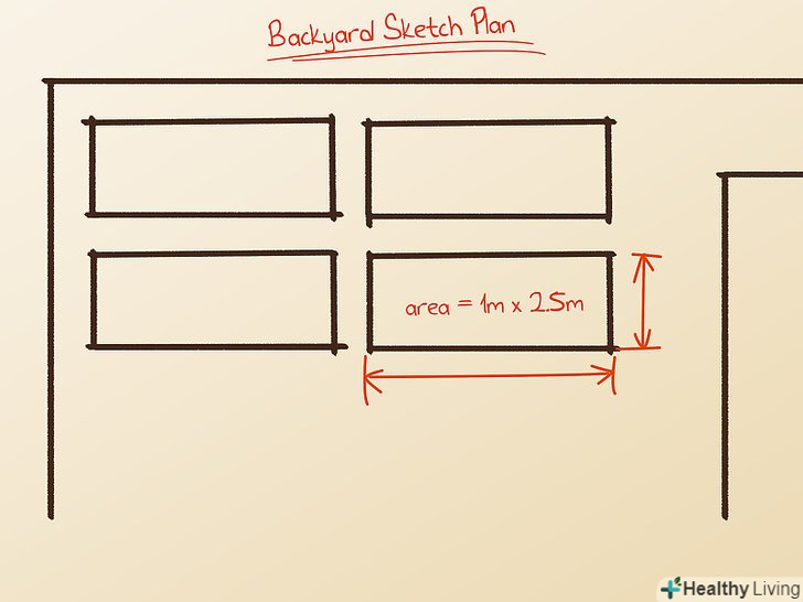 Намалюйте план грядок, Виміряйте ваш ділянку і додайте вимірювання на креслення. Тепер ви зможете визначити, скільки матеріалу вам знадобиться, щоб побудувати грядку.