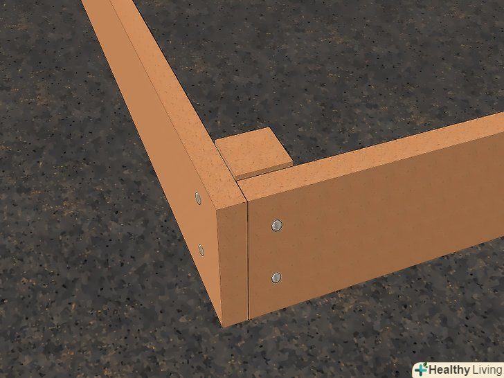 Створіть виступ, якщо це необхідно. можна створити більш привабливу грядку, додавши виступ до верхнього краю бортів. По-перше, візьміть дошки необхідної ширини і зробіть скіс під кутом в 45 градусів на кінцях кожної дошки в стилі рамки для картини. Придбайте дерев'яні кілочки товщиною, наполовину ширини виступу і використовуйте відповідні цвяхи, щоб прикріпити їх до зовнішньої сторони у верхній частині грядки. Підгоніть обрізані краї дощок разом і прибийте цвяхами виступ до внутрішніх кутах зверху в Кілочки.