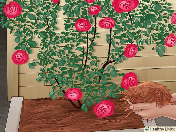 Додайте зверху мульчу. розкладіть навколо підстави куща деревну тирсу або лушпиння какао-бобів — будьте при цьому обережні і не присипте стовбур. [13] Мульча допоможе рослині довше зберігати вологу і захистить його від бур'янів.