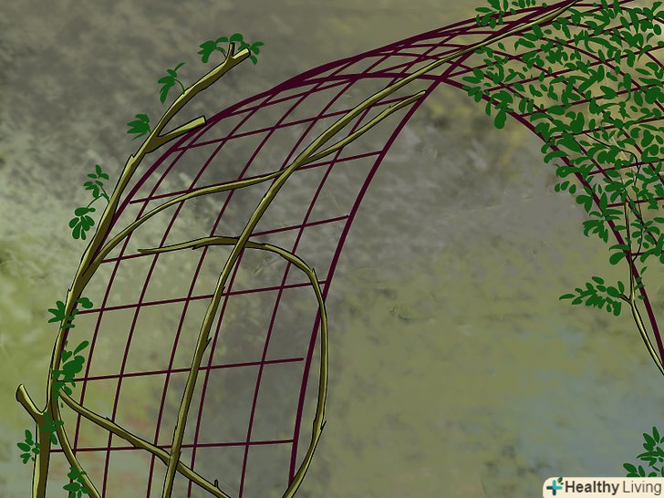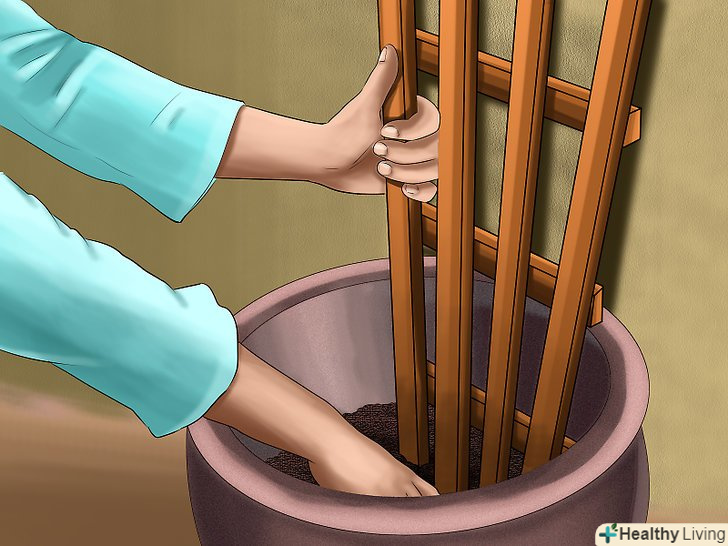 Встановіть опору. після того як ви виберете відповідне місце і опору, необхідно встановити її в землі. Підіпріть підставу опори кілочками, щоб зробити її більш стійкою. Якщо ви збираєтеся уперти опору в стіну, розмістіть її підставу хоча б в 30-60 сантиметрах від стіни, щоб рослині вистачало місця і ви мали до нього вільний доступ. [9]