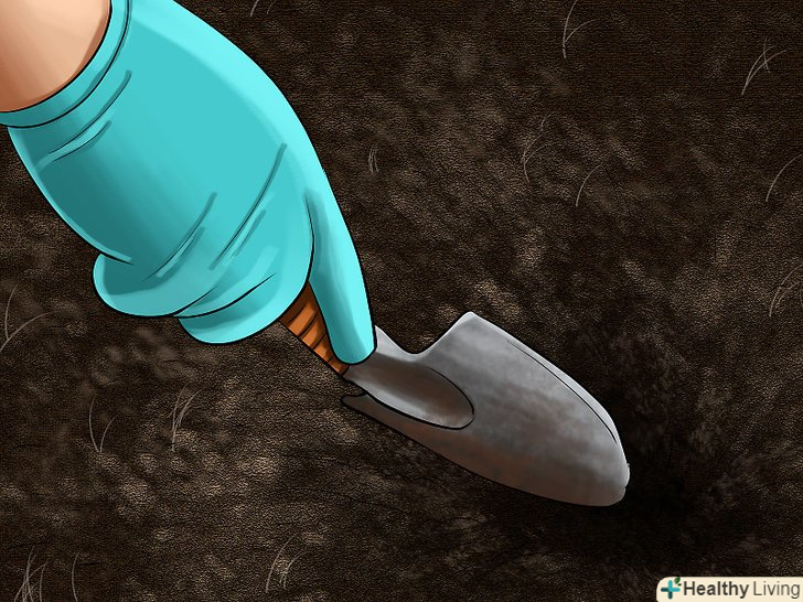 Виройте ямку глибиною 60 сантиметрів. Візьміть лопату, відміряйте рулеткою 45-75 сантиметрів від основи опори і викопайте в цьому місці ямку глибиною 60 сантиметрів і приблизно в два рази ширше, ніж коріння рожевого куща. У цю ямку ви посадите кущ. [10]