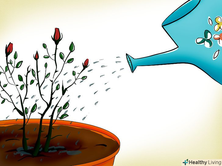 Поливайте троянди з барвником для коренів раз на два тижні. намагайтеся поливати середину куща. Повторіть в міру необхідності.