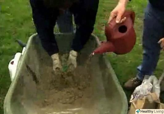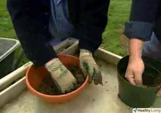 - Помістіть частину суміші в пластиковий квітковий горщик, відро або іншу форму.