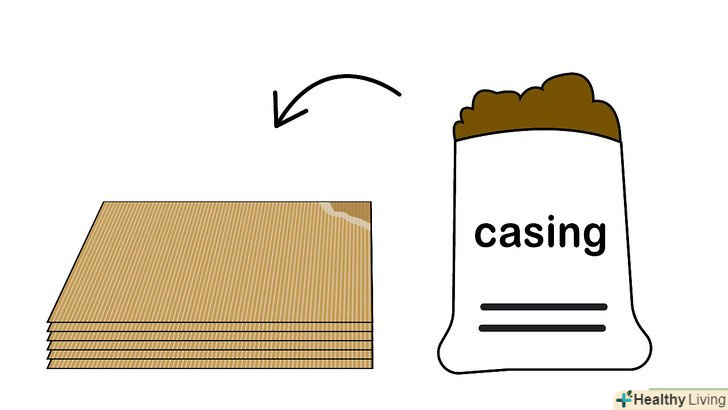 - Картонний субстрат. складіть листки картону в харчовий поліетиленовий пакет. При цьому насипте трохи міцелію між сусідніми листками. Якщо міцелій злежався, розкришите грудки пальцями. [9]