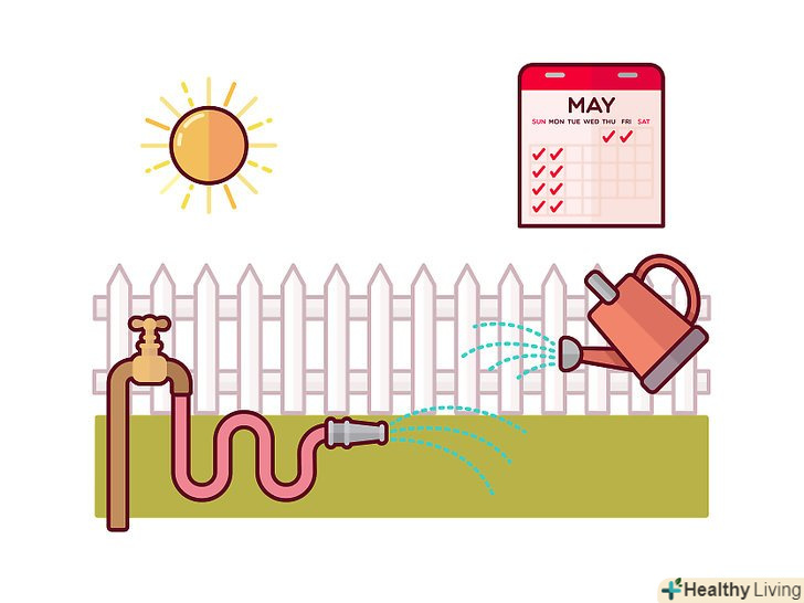 Поливайте газон 1-2 рази на тиждень, щоб запобігти зростанню конюшини. переконайтеся, що газон залишається вологим і насичений водою, щоб такі бур'яни, як конюшина, не могли рости. Поливайте газон 2,5 см води рано вранці 1-2 рази на тиждень, щоб він залишався здоровим. Якщо газон буде залишатися сухим, йому буде бракувати поживних речовин, і він буде в занадто поганому стані, щоб боротися з такими бур'янами, як конюшина. [10]
