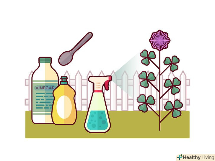 Обприскати конюшина розчином з оцту і мила. налийте в розпилювальну пляшку 1 столову ложку (15 мл) білого оцту, 1 столову ложку (15 мл) рідини для миття посуду і 3⁄4 (180 мл) води. Обробіть конюшину цим розчином, щоб убити його. [4]- Простежте за тим, щоб розчин не потрапив на навколишні рослини і траву, так як він може їм нашкодити.