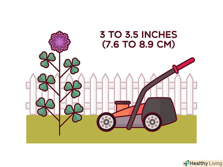 Підстригайте газон так, щоб трава була вище конюшини. Налаштуйте газонокосарку на висоту в 7,6–8,9 см, щоб не підстригати траву занадто коротко. При стрижці газону газонокосарка не повинна опускатися нижче 2,5 - 3,8 см.якщо трава буде високою, то вона закриє собою сонячне світло, який так необхідний конюшині та іншим бур'янам, тим самим запобігаючи їх зростання. [9]