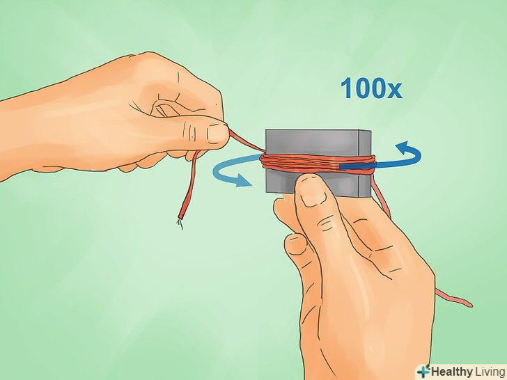 Намотайте 100 витків електромагнітного проводу уздовж половинки сердечника.з кожної зі сторін залиште запас дроти довжиною в п'ять-десять сантиметрів. Вони надалі будуть використовуватися для підключення аудіо-штекера.