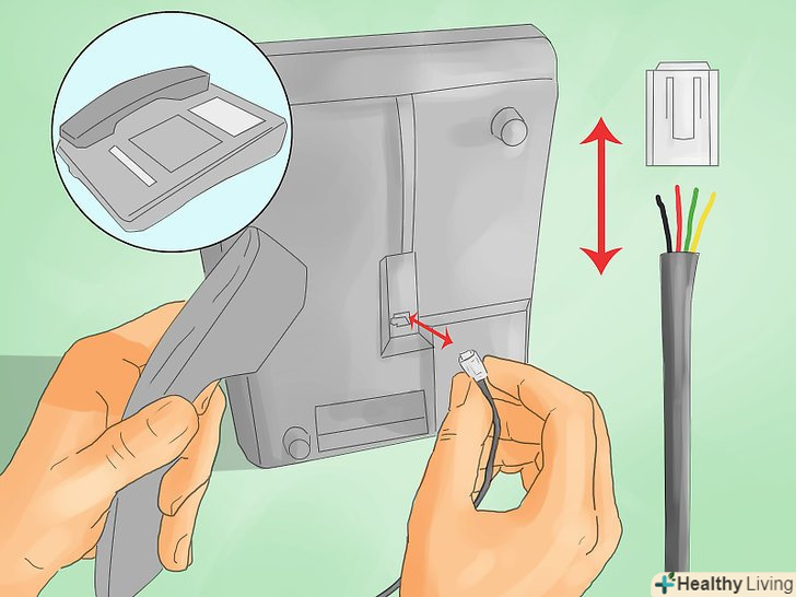 Вимкніть телефон і кабель, що йде до нього. щоб змусити вашу індуктивну котушку працювати, вам потрібен POST-телефон (звичайний стаціонарний телефон). Видаліть пластиковий коннектор, не переламавши при цьому дроти всередині. Пошкодження призведе до обриву телефонної лінії і індуктивна котушка не буде працювати.