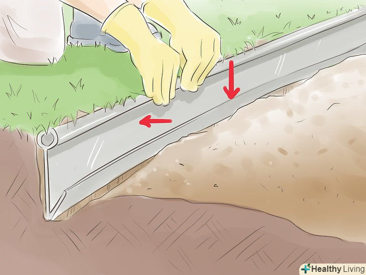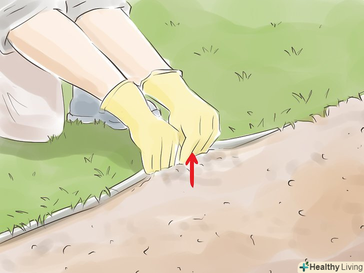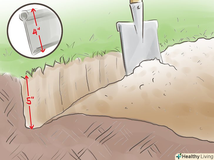 Викопайте траншею по краю лінії: траншея повинна бути настільки глибокою, як пластикове обрамлення галявини плюс 2,5 см. наприклад, якщо 4-х дюймове обрамлення, траншея буде глибиною 5 дюймів