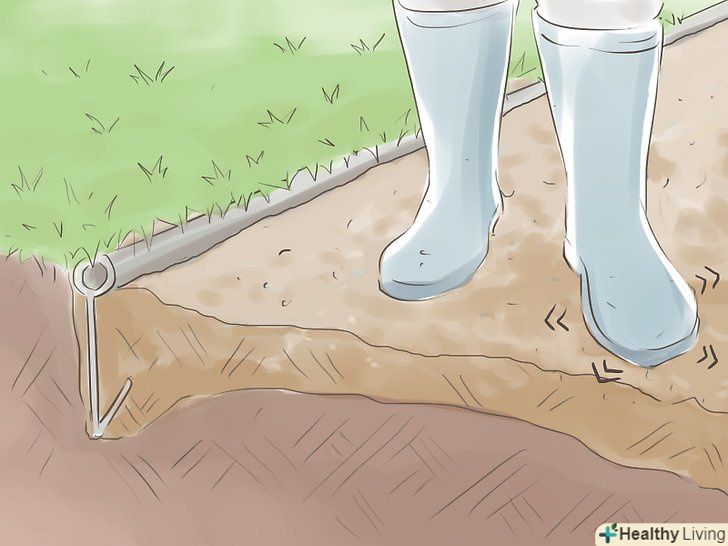 - Ви можете відзначити лінію, яку хочете викопати, покладіть садовий шланг в бажану форму і залиште на кілька годин. Шланг залишить невелике заглиблення в траві, яке ви можете побачити після того, як його приберете. Якщо вам не подобається ця лінія, можна повторити процес або змінити лінію.