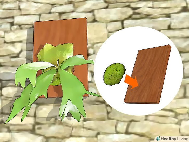 Встановіть його. якщо він ще не встановлений, поставте його на щось підходяще, наприклад, шматок дерева, частина дерева папороті або зміцніть за допомогою дротяної конструкції. Ваш місцевий заповідник може показати вам, як це зробити.- Одним з найпростіших способів є той, в якому потрібно прикріпити папороть до шматочків моху сфагнуму і потім приєднати цей мох до кори або іншого місця. Змішайте трохи кісткового борошна і мох. Потім прикріпіть всю конструкцію до стіни або до іншої вертикальної установки, розташованої в тіні.