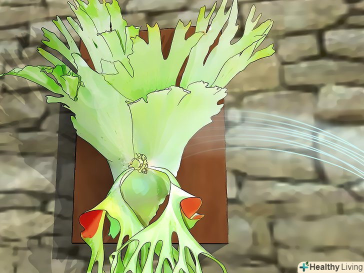Поливайте часто, особливо в спекотні місяці. папороть "оленячий ріг" не повинен пересихати; в тропічних умовах він отримує щоденні дощі і знаходиться завжди у вологому середовищі. Розпилюйте воду частіше в більш спекотні місяці, по крайней мере, один раз на тиждень. Намагайтеся не переливати його, так як він може легко згнити. Дозвольте спочатку висохнути підкладці, а потім вже і воді.- Менше поливайте папороть, якщо йде дощ або стоїть прохолодна погода.