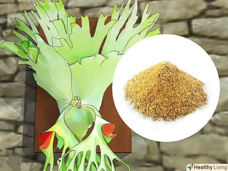 Добрива. рослині необхідна невелика кількість кісткового борошна (див. вище) або певний корм, який вказаний в інструкціях на упаковці. Листові добрива необхідно використовувати тільки при активному зростанні «оленячого рогу» (в теплу пору року).- Упакуйте мох або іншу підкладку для «оленячого рогу» з органічним матеріалом.