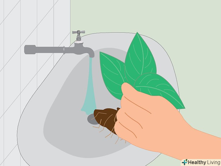 Ретельно промийте коріння і видаліть з них всю землю. змийте з коренів бруд під невеликим напором води. Видаліть пальцями пристали до коріння грудки землі. Після цього промокніть коріння паперовим рушником.