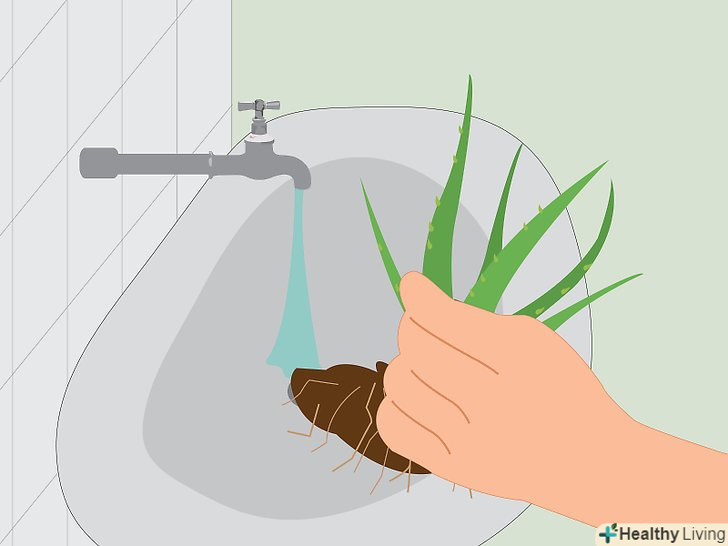 Дістаньте рослину з грунту. якщо рослина знаходиться в горщику, акуратно подденьте землю по краях за допомогою совка. Якщо рослина розташована в землі, виройте навколо нього досить широке коло. Будьте обережні і не торкайтеся коренів. Акуратно підніміть рослина і струсіть з коренів великі грудки землі. [6] не тягніть рослину занадто сильно і не смикайте його.