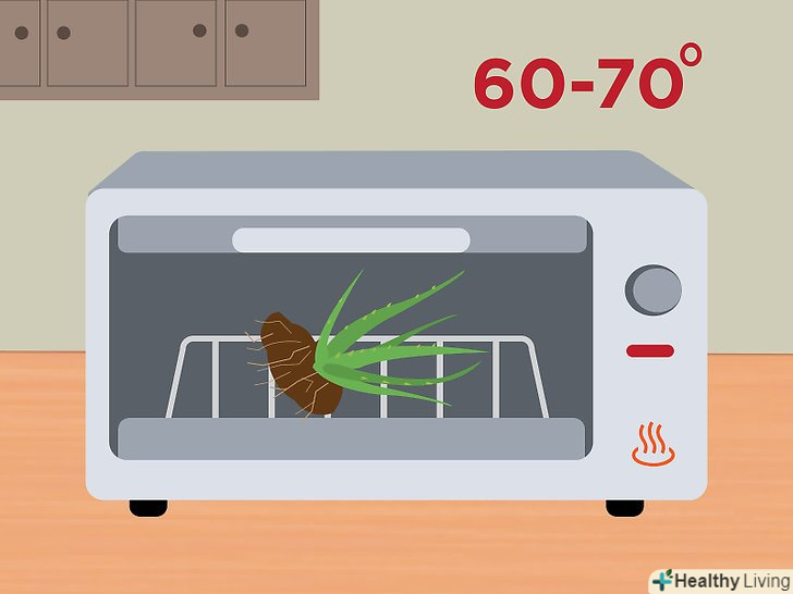 - Підійде також звичайна духовка з вентиляцією. Виставте на ній 60-70 градусів Цельсія і сушіть рослину протягом 6 годин. За цей час рослина майже повністю висохне, хоча в ньому все ж залишиться трохи вологи. Не залишайте духовку включеною на ніч.