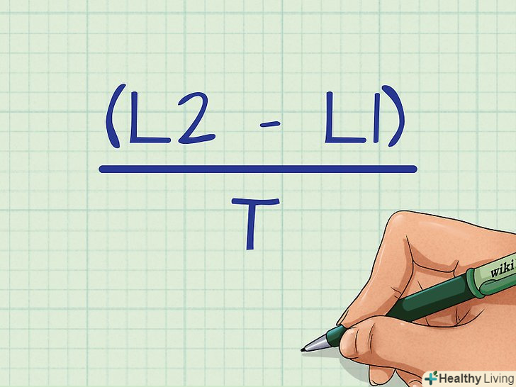 , де L1 — результат початкового вимірювання, L2 — результат кінцевого вимірювання, T — число днів між двома вимірами.