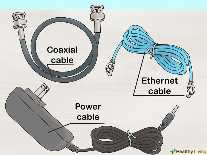 Переконайтеся, що у вас є всі необхідні кабелі. для установки модему вам знадобиться коаксіальний кабель для підключення до вихідного кабелю і кабель живлення для електричної розетки. Обидва ці кабелі повинні йти в комплекті з модемом, але якщо ви купили його з рук, знайдіть їм заміну.- Якщо ви плануєте підключити модем до маршрутизатора, вам також не обійтися без кабелю Ethernet.