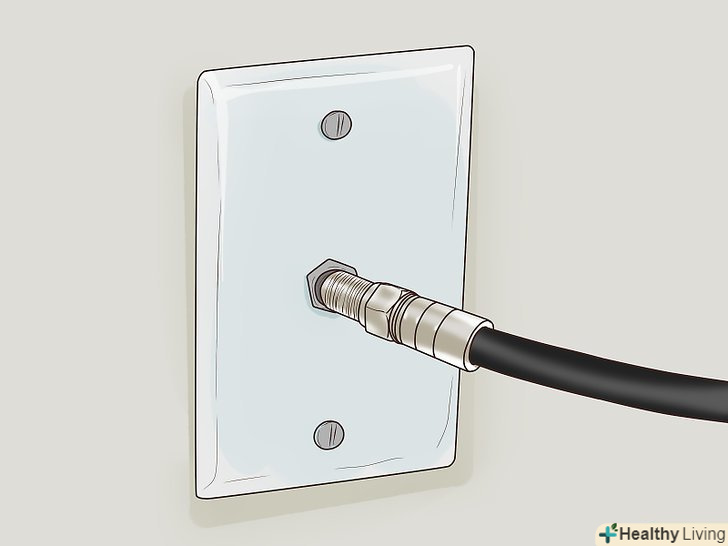 Знайдіть в кімнаті вихідний кабель. вихідний кабель виглядає як металевий циліндр з невеликим отвором посередині і закрученими гвинтами з боків. Вихідні кабелі зазвичай розміщують в стіні біля підлоги в житлових кімнатах і спальнях.- Можливо, до цього входу вже підключений кабель.