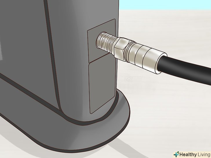 Вставте один кінець коаксіального кабелю у вихідний кабель. обидва кінці коаксіального кабелю закінчуються коннектором, що нагадує голку. Вставте його в вихідний отвір. Загвинтіть коаксіальний кабель до вихідного отвору, щоб забезпечити міцне з'єднання.