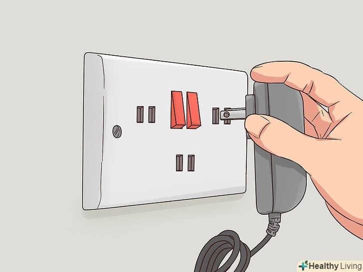 Вставте кабель живлення модему в настінну розетку або мережевий фільтр. щоб уникнути можливих пошкоджень через неправильну послідовність підключення кабелю, підключіть його спочатку до розетки, а потім до модему.