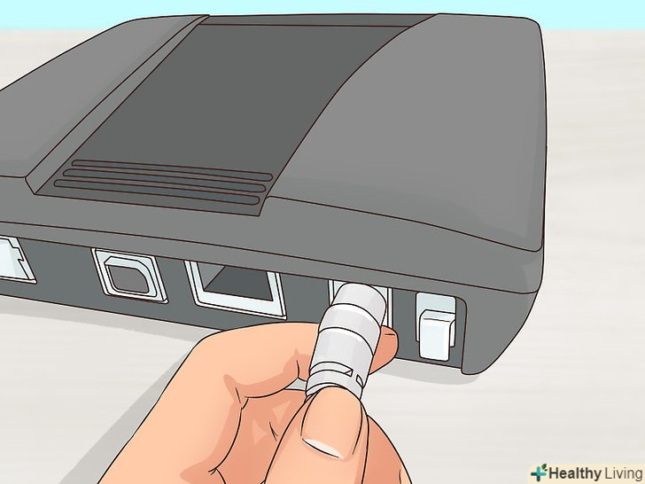 Вставте в модем вільний кінець кабелю живлення. вхідний порт для кабелю живлення зазвичай розміщують на задній панелі модему. Якщо не можете його знайти, зверніться до керівництва користувача до модему.