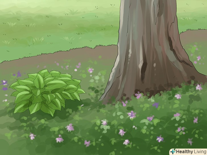 Виберіть рослини, які добре ростуть у тіні. площа під великими, старими деревами можна засаджувати квітучими багаторічними і однорічними рослинами, щоб скрасити сірий і часто голий ділянку землі. Однак, рослини потрібно вибирати ретельно, так як не всі багаторічні та однорічні рослини можуть рости там. Ви повинні вибрати рослини, які добре ростуть в тіні і з неглибокими коріння.- Хости (Хоста види) - ідеально підходять для таких областей. Їх велике листя можуть бути строкатими або різних відтінків синього і зеленого, а їх квіти, як правило, пурпурні або білі. Вони, як правило, витривалі в американських кліматичних зонах 3-9, хоча це дещо змінюється залежно від сорту, і діапазону висот від 5 см до 1.5 метра.