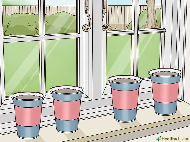 Пересадіть саджанці в окремі горщики. за допомогою лінійки або інструменту для пересадки саджанців дістаньте рослини зі склянки. Будьте обережні, щоб не пошкодити коріння. Після цього пересадите їх в ямки, трохи б Про льшіе за розміром, ніж клубок коренів, і присипте землею. [13]- Після пересадки в горщики рослини можна тримати в приміщенні або на вулиці, в залежності від погоди. Якщо на вулиці занадто яскраво світить сонце, краще тримати рослини в приміщенні, поки вони не зміцніють.