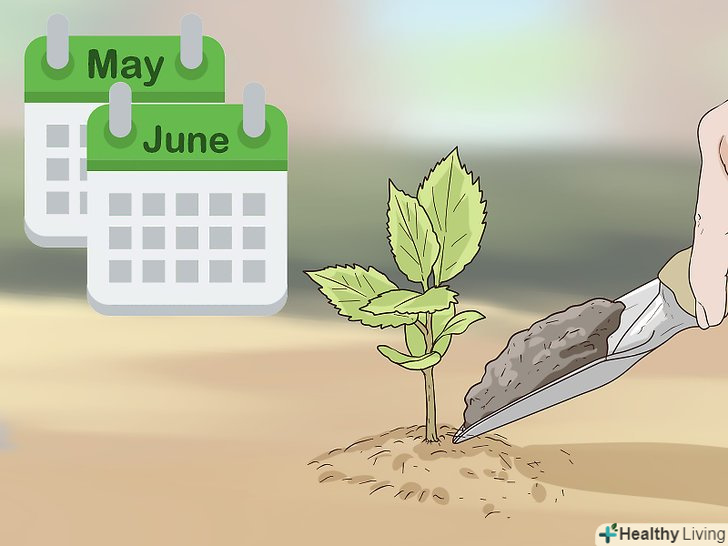 Висадіть молоді рослини в травні або червні. на початку вегетативного сезону слід висадити саджанці у відкритий грунт, щоб їх коріння встигли як слід закріпитися на новому місці до настання зими. Виберіть відповідний день в кінці весни або початку літа. [14]