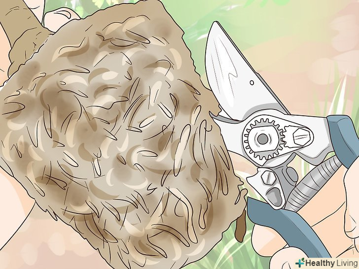 Зріжте садовими ножицями ті коріння, які охоплюють стовбур дерева. якщо ви виростили саджанці в горщиках, досить висока ймовірність того, що деякі коріння закрутяться навколо стовбура. Покладіть саджанці на бік і за допомогою гострих садових ножиць обріжте такі коріння. [20]- Можна також спробувати випрямити закрутилися коріння руками.