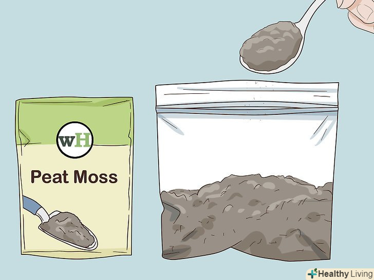 Заповніть пластиковий пакет вологим сфагнумом. Сфагнум (торф'яний мох) добре утримує вологу, його можна придбати в магазині товарів для саду та городу. Заповніть щільно закривається пластиковий пакет сфагнумом і додайте трохи води. Мох повинен бути вологим, але не мокрим. [3]- Можна використовувати і вологу суміш для кімнатних рослин, проте її, можливо, доведеться поливати частіше, ніж мох.