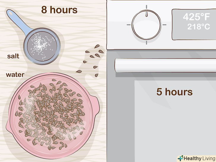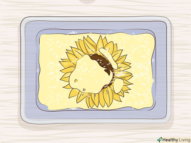 Приготуйте насіння соняшнику. візьміть 4 літри води і додайте в неї склянку (близько 300 грамів) солі. Переберіть насіння і видаліть з них пелюстки і інше сміття, а потім висипте їх у воду. Зачекайте 8 годин (або довше), поки насіння просочаться водою, після чого зцідіть воду і розкладіть насіння на сковороді або деку. Розігрійте духовку до 220 °C, помістіть в неї насіння і почекайте близько 5 годин, щоб вони як слід висохли. [17]- Пересипте насіння в щільно закривається ємність і поставте її в морозильну камеру. Так ви зможете зберігати їх до одного року. [18]